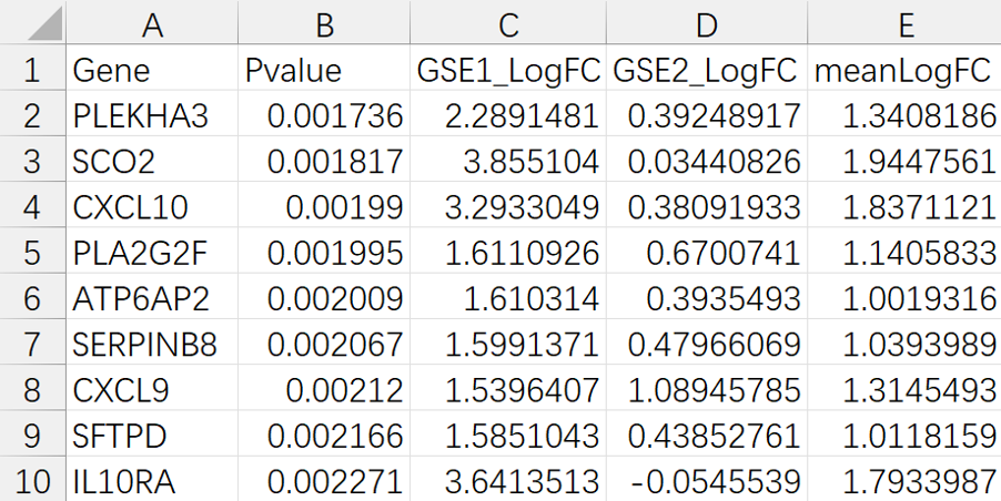 required_cols <- c("Gene", "meanLogFC", "GSE1_LogFC", "GSE2_LogFC")